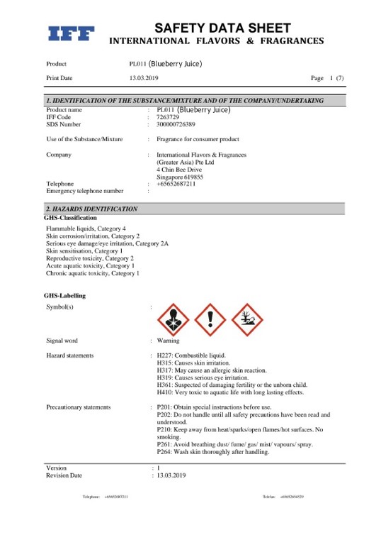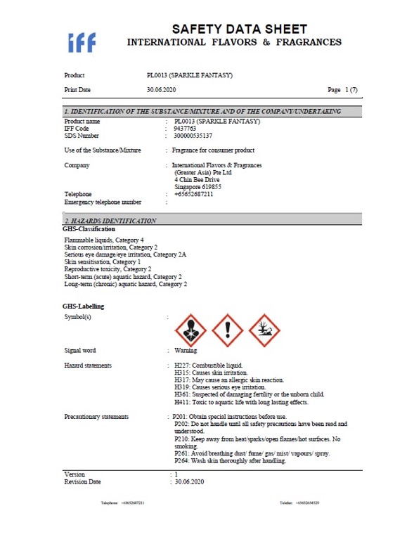 Sumber semula jadi iaitu “Sugarcane based halal ethanol”. Aroma bauan adalah seperti berikut:
